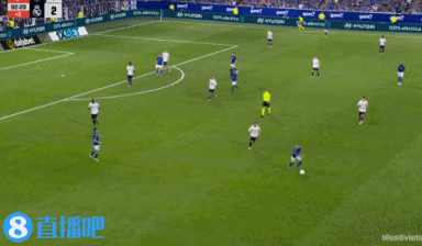 补时阶段,迪亚斯横传,维尼修斯低射破门,皇马3-0领先奥维耶多!