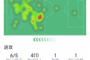 终获首球,杰克逊本场数据:传射建功,6射5正,1次中框,1失良机