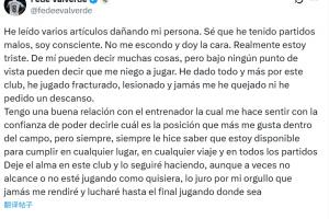 体育资讯10月01日讯 巴尔韦德发布社媒,回应此前媒体报道称自己拒绝出战的说法,他表示自己与教练关系很好,愿为皇马付出一切。
