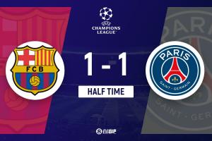 体育资讯10月2日讯 欧冠联赛阶段第二轮比赛,目前巴萨主场1-1巴黎。