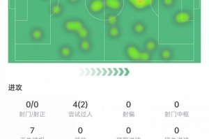 佩德里本场数据:12次对抗9次成功,传球成功率95.5%,获评7.2分