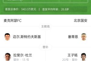 体育资讯10月02日讯 亚冠二级联赛小组赛第2轮,北京国安客战澳超球队麦克阿瑟FC,国安首发轮换了半支队伍。