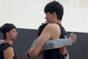 气氛不错!塞布尔刚进训练馆就熊抱杨瀚森 众将面对镜头笑呵呵