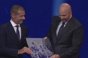 欧战全满贯!欧冠抽签仪式上,切尔西获颁欧足联特殊纪念牌