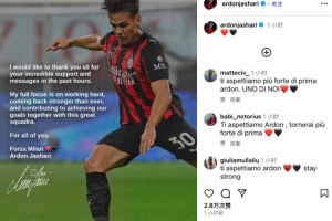 将长期伤缺亚沙里社媒:会以比过往更强大姿态回归,佛砸米兰