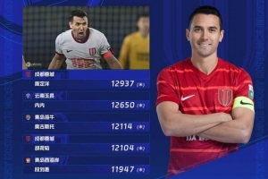 第26轮跑动榜:蓉城两人进入前五位,周定洋12937米位居榜首