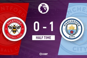 半场-曼城暂1-0布伦特福德 哈兰德破门 罗德里无对抗伤退