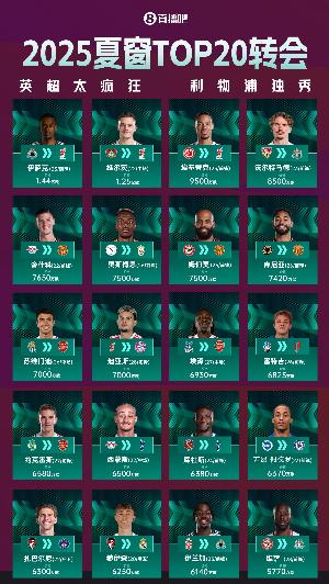 夏窗top10验货!维尔茨1.25亿10场1助 舍什科8场2球 迪亚斯6球4助