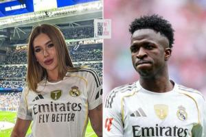弗吉尼亚上周做客伯纳乌球场,秀出自己身穿皇马球衣的图片,以及维尼修斯的7号和球衣上的亲笔签名。