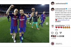 体育资讯10月8日讯 阿尔巴将在本赛季结束后退役,老队友伊涅斯塔社媒发文祝福。