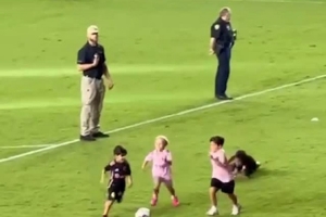 442社媒晒出视频,梅西的孩子们与其他小球员一起玩耍踢球,场上对抗激烈,频频出现冲撞和放铲的场景。