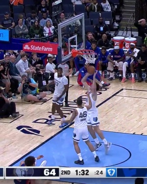 维金斯突入禁区高打板 文班亚马顶级高度送出钉板大帽