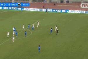 边裁第一时间举旗示意越位,但随后主裁判在VAR的检查下改判不越位,武汉女足1-0领先!