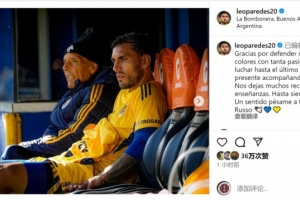 体育资讯10月9日讯 博卡青年主帅鲁索去世,帕雷德斯社媒发文悼念。