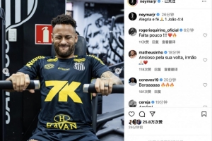 为复出努力!内马尔社媒晒出力量训练照:保持喜乐与信心