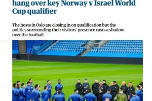卫报:10月12日挪威vs以色列的世预赛,场馆部分区域将被关闭