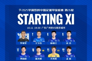 2025华润饮料中甲联赛第26轮,广东广州豹VS南京城市 首发名单出炉,让我们并肩战斗!