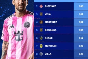 美职联球员参与百球场次排行:梅西80场最快,第二乔文科100场