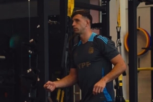 马丁内斯在室内训练间隙跳舞,似乎在琢磨新的庆祝舞步,阿根廷队社媒晒出视频,配文:“认真训练又乐在其中。”