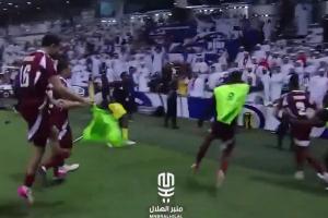 白头巾气炸了阿联酋球迷被挑衅后疯狂扔水瓶,冲进场内扭打