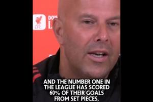 斯洛特调侃:联赛第一60%进球是定位球,我们只落后1分,没那么糟