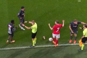 无妄之灾因球迷投掷水杯击中主裁,比甲一场比赛第87分钟中止