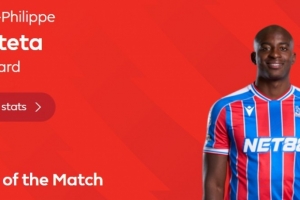 本场比赛水晶宫前锋马特塔上演帽子戏法,赛后他也当选英超官方球迷票选全场最佳球员。