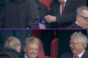 曼联领先!弗格森在看台上分享巧克力给达格利什,弗爵笑得超开心
