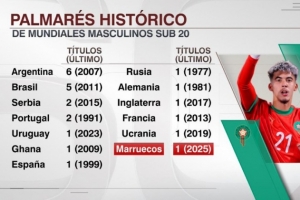 据ESPN统计,摩洛哥是第13个赢得世青赛冠军的国家,而阿根廷赢得6次世青赛冠军,所有国家中最多。