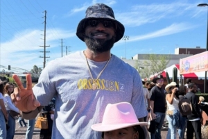 慈世平晒参加湖人亲子活动:感谢东契奇和詹姆斯与我孙女合影