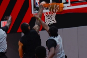 亚当斯暴扣+梦幻联动申京!火箭官媒晒队内训练视频
