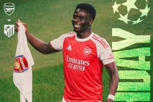 阿森纳晒欧冠主场对阵马竞海报预热:萨卡单人出镜