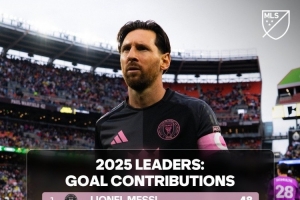 本赛季美职联参与进球榜:梅西48球断层居首,德雷尔38球次席