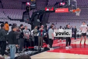 迎常规赛首秀!拓记:杨瀚森进场热身 场边围满了媒体