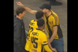 当面对线瑞士超球队输球球迷走下看台激烈交流,球员认真倾听