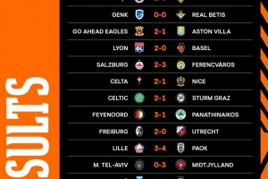 欧联杯第三轮比赛:费内巴切1-0斯图加特,罗马、里尔、维拉落败