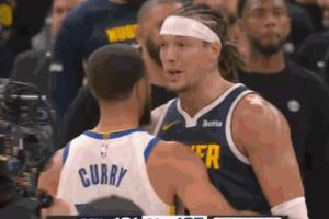 后羿VS吕布!库里和戈登二人赛后拥抱致意简单唠两句