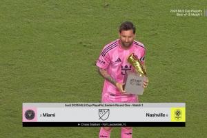 先领个金靴!季后赛首轮开场前,梅西领取常规赛金靴金杯