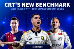 《转会市场》统计显示C罗也是唯一为4家俱乐部都能达成百球里程碑的球员: