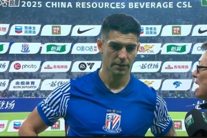 体育资讯10月26日讯 北京时间10月26日19:30,中超联赛第28轮,申花2-2绝平大连英博错失追分良机,赛后打进绝平点球的路易斯接受场边记者采访。