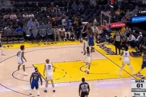 攻防建功!库明加送大帽后下快攻 接库里传球上篮得手