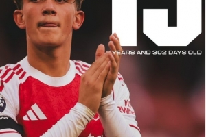 前途无量!15岁302天,道曼成阿森纳队史最年轻首发球员