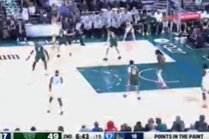 毫厘之间!小琼斯半场结束前压哨补扣 回放显示2分有效