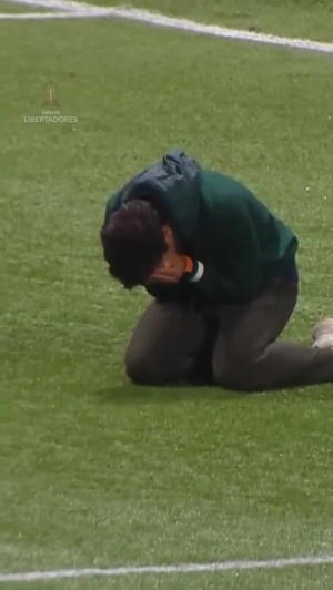 比赛结束后,帕尔梅拉斯主帅阿贝尔-费雷拉跪地捂脸痛哭。