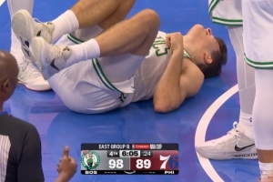 不讲武德!恩比德被犯规后空中蜷缩 踢到对方敏感部位&感觉很疼
