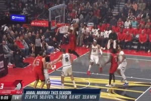 一气呵成!夏普拿球晃开防守 底线突破腾空暴起双手扣篮