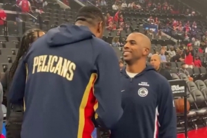 曾经的空接之城!小乔丹赛前与保罗握手 两人寒暄了好半天