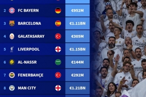 10月德转俱乐部浏览量榜:皇马、拜仁、巴萨前三,利雅得胜利第六