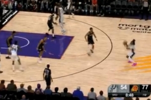 踩着logo出手!卡斯尔接巴恩斯传球超远三分飚中