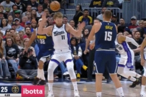 看你躲不躲!约基奇迎着小萨脑袋传球助攻戈登 小萨躲球目送得分